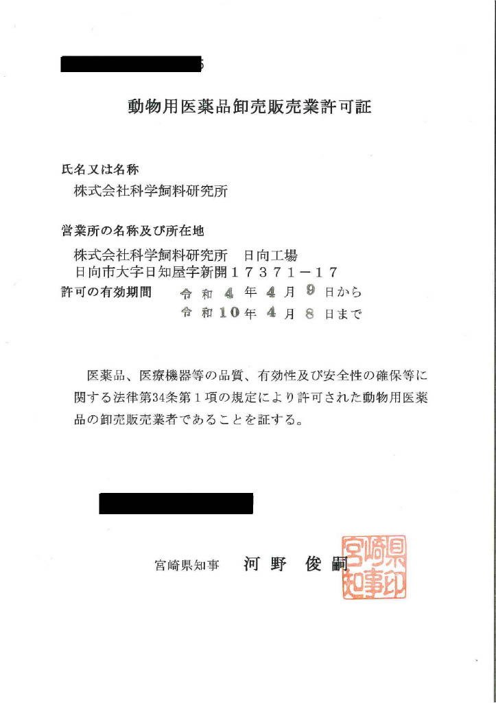 | 6.認証範囲(事業上) | 「飼料、飼料添加物、動物用医薬品の開発・製造及び販売」 |