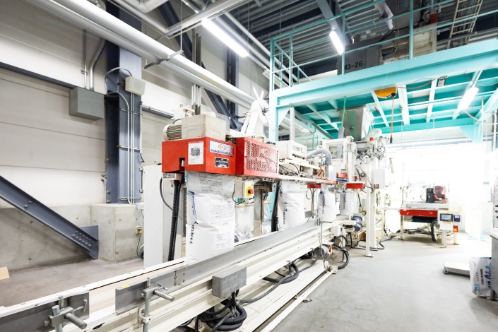 成長初期の豚を支える人工乳の製造と、原体加工の製造を通じて、畜産現場を支える重要な役割を果たしています。