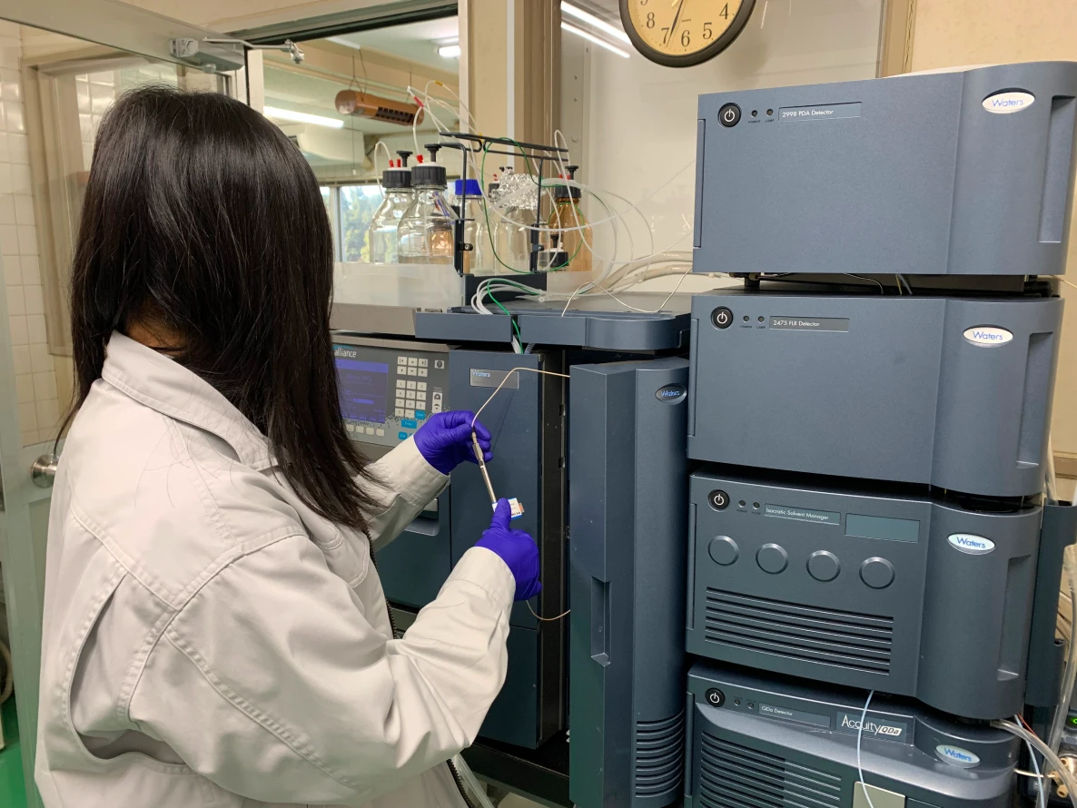 ※写真は、HPLCを用いて主成分の含量を測定している様子です。