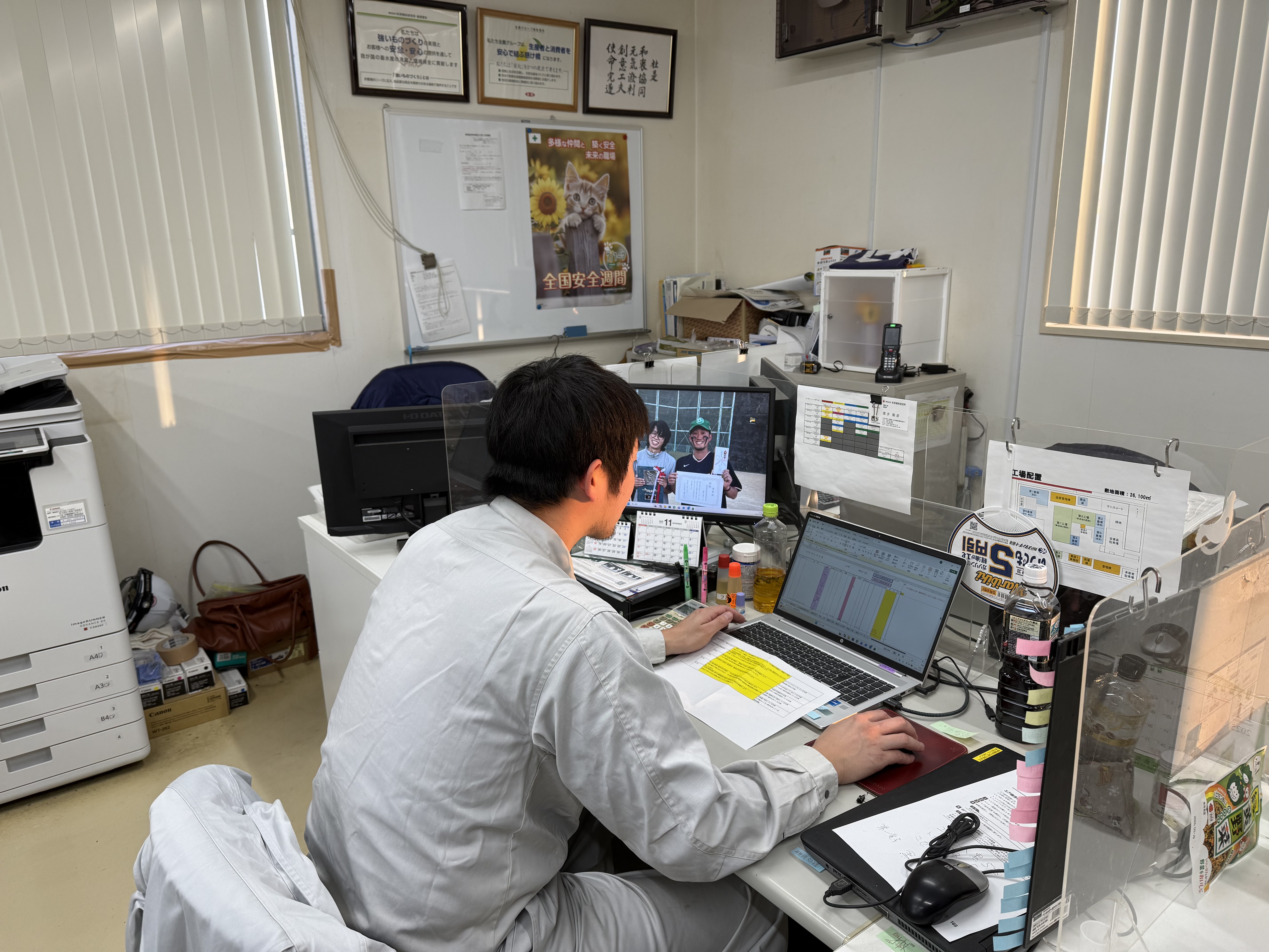 8:00頃出勤し、メールやその日の各工程での生産計画を確認します。