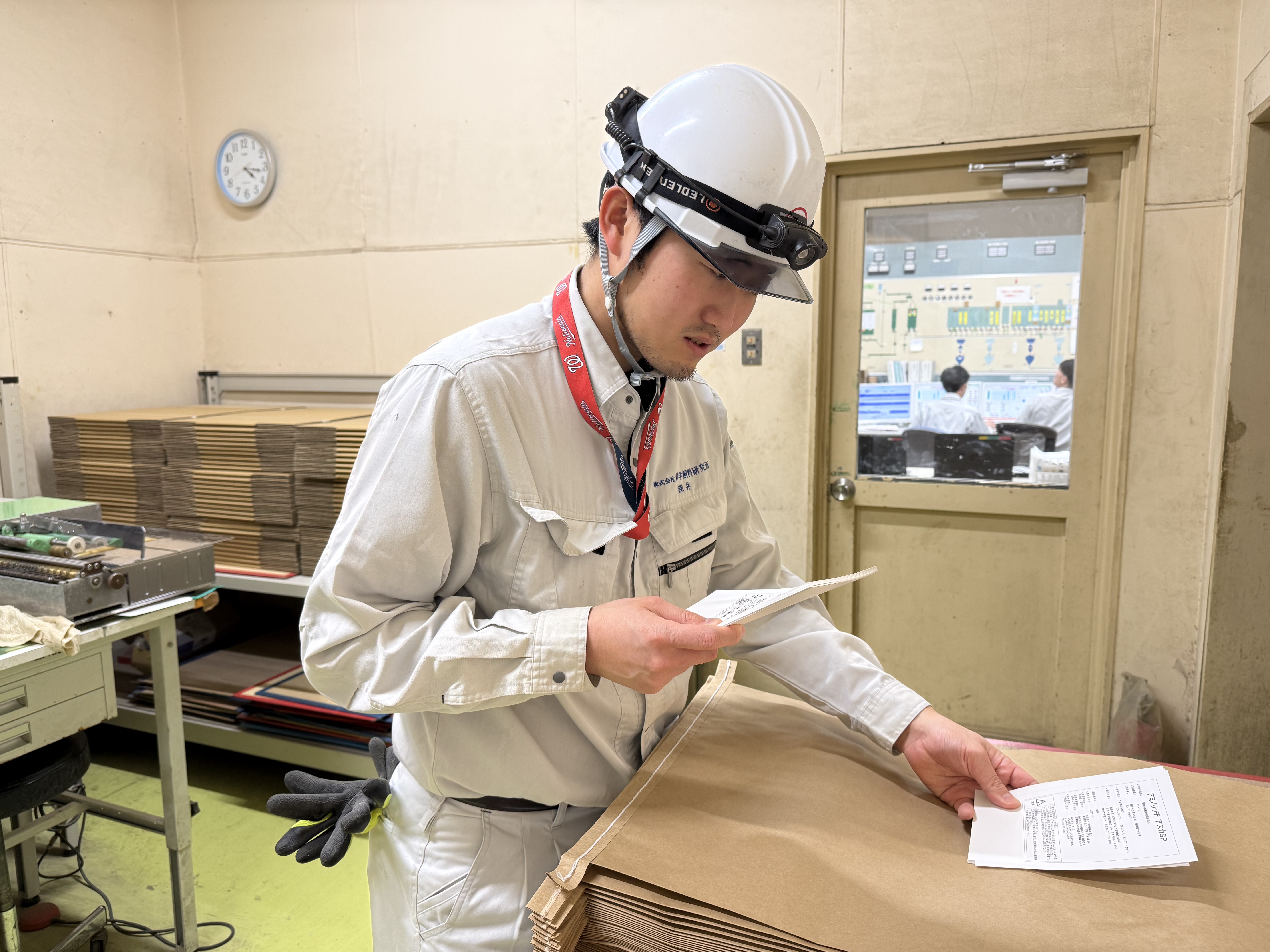 製造現場での製品の抜取・包装作業や製品を充填する資材(紙袋、表示票)の管理をしています。