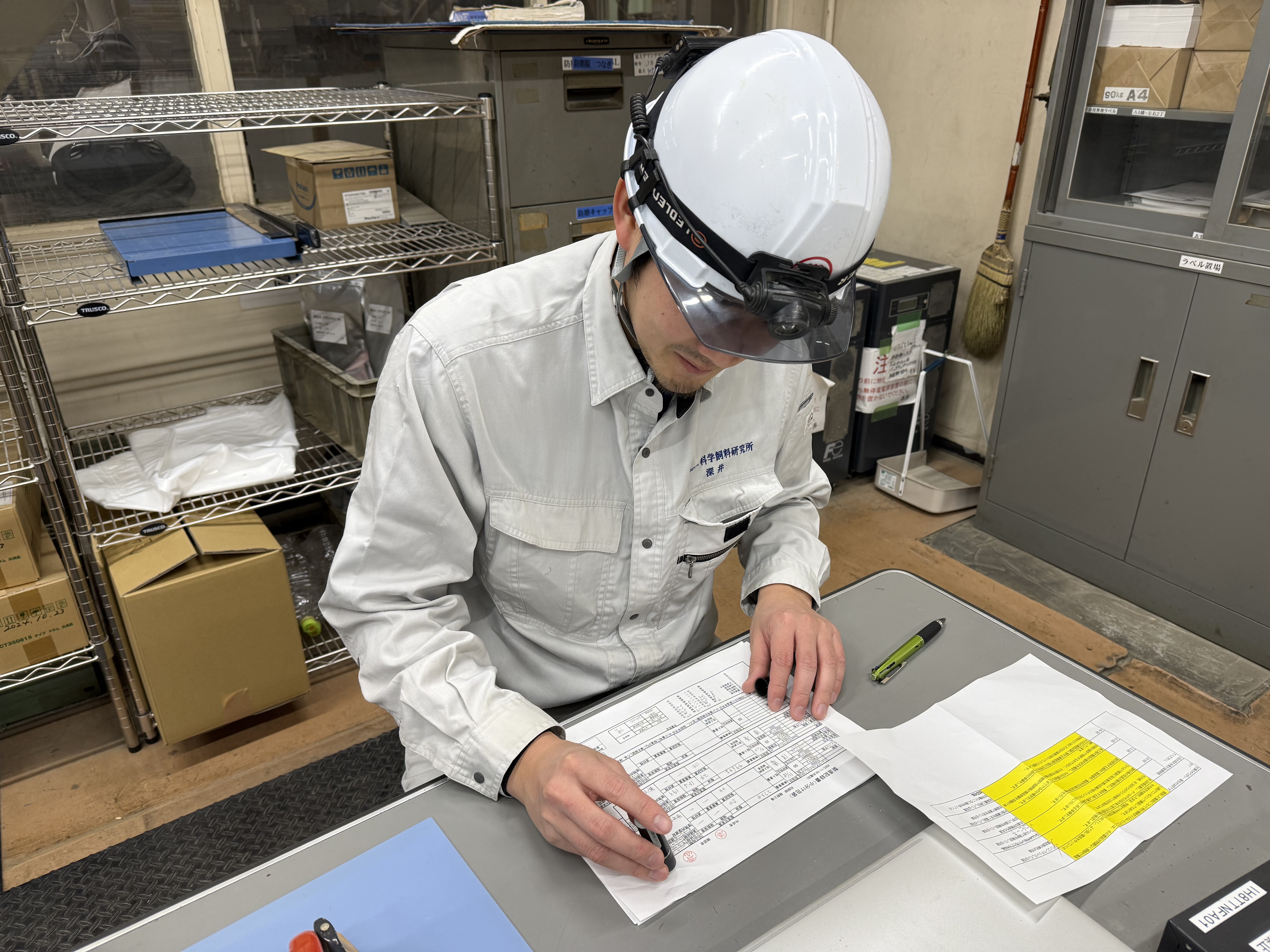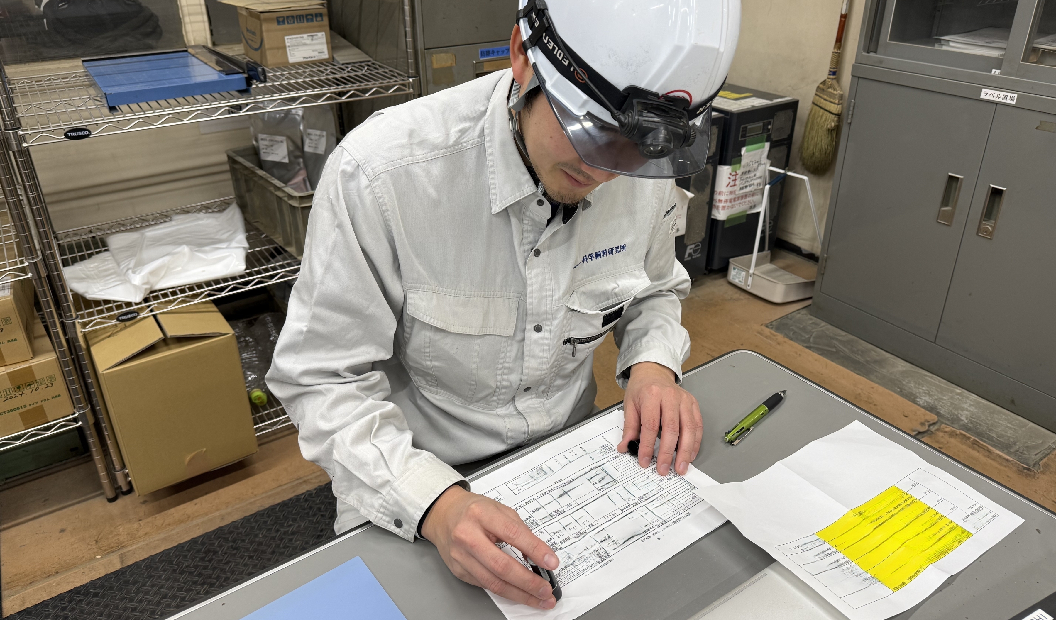 その日の製造記録に関する事務処理や翌日に印字をする資材の準備をします。