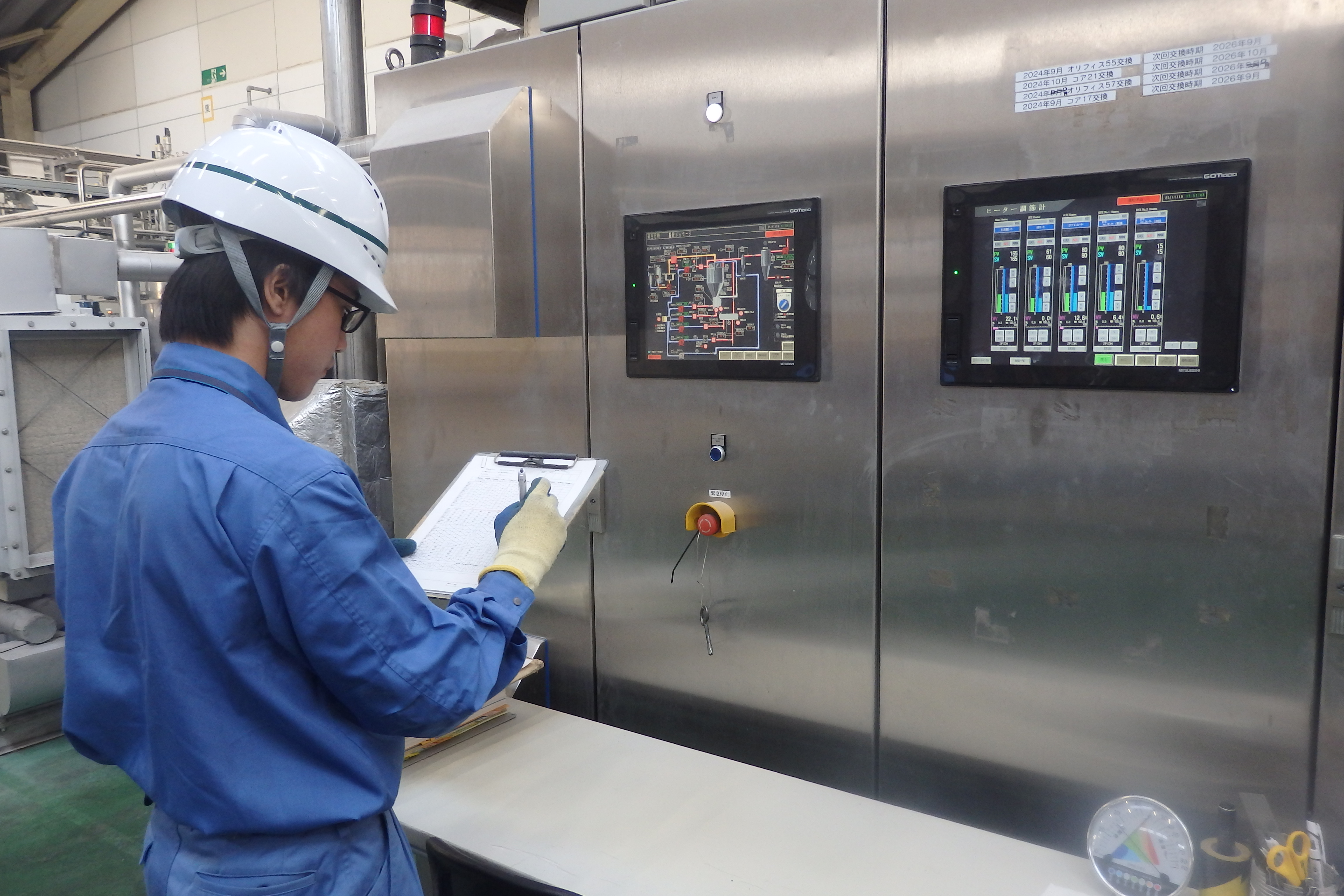 業務内容として、主に原料の投入作業や機械の立ち上げ、製品の集約作業などを行っています。