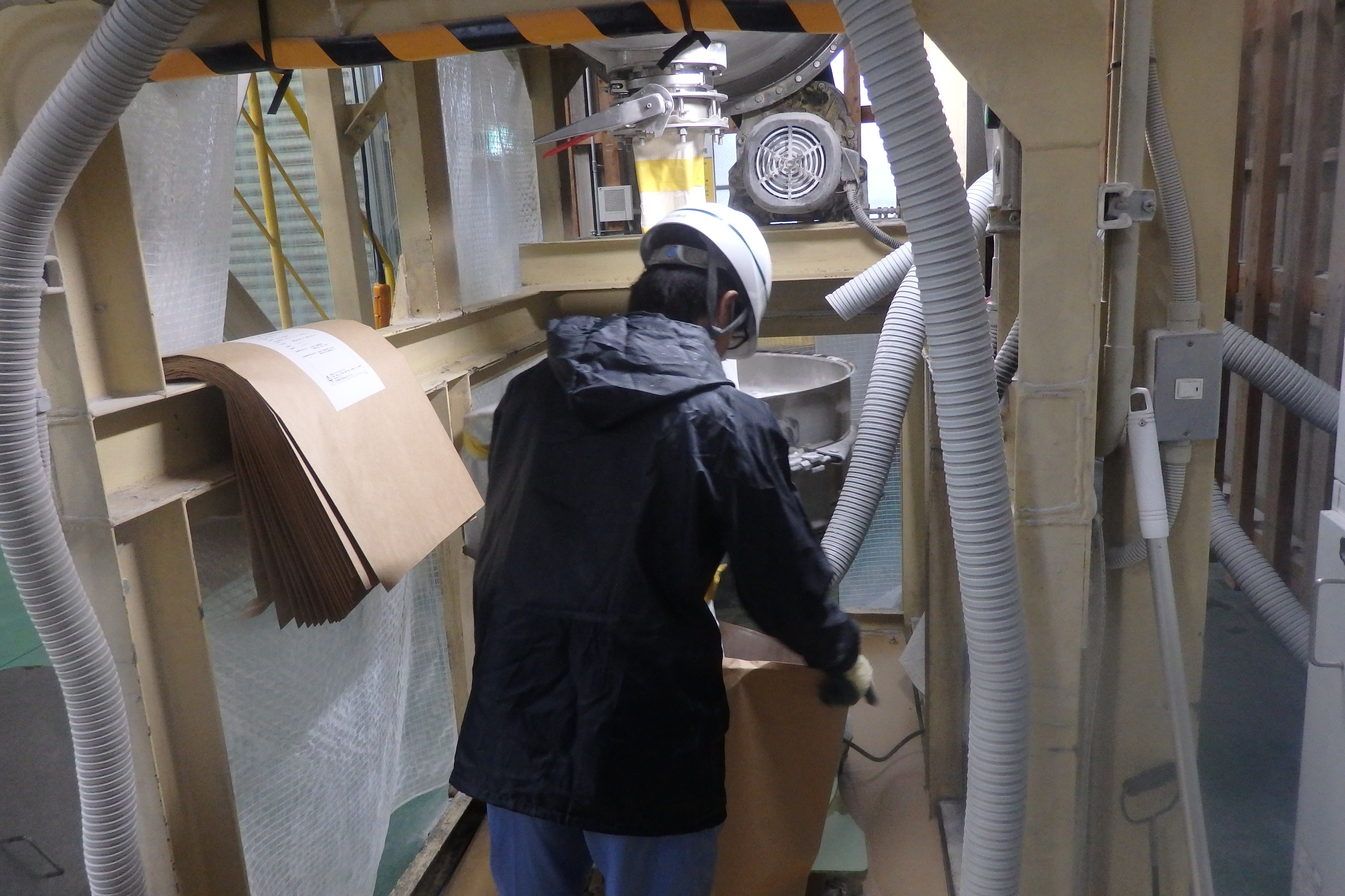 集約した製品は他社や他の自社工場などに出荷されるので、破袋など起こさないよう十分注意しながら作業を行っています。