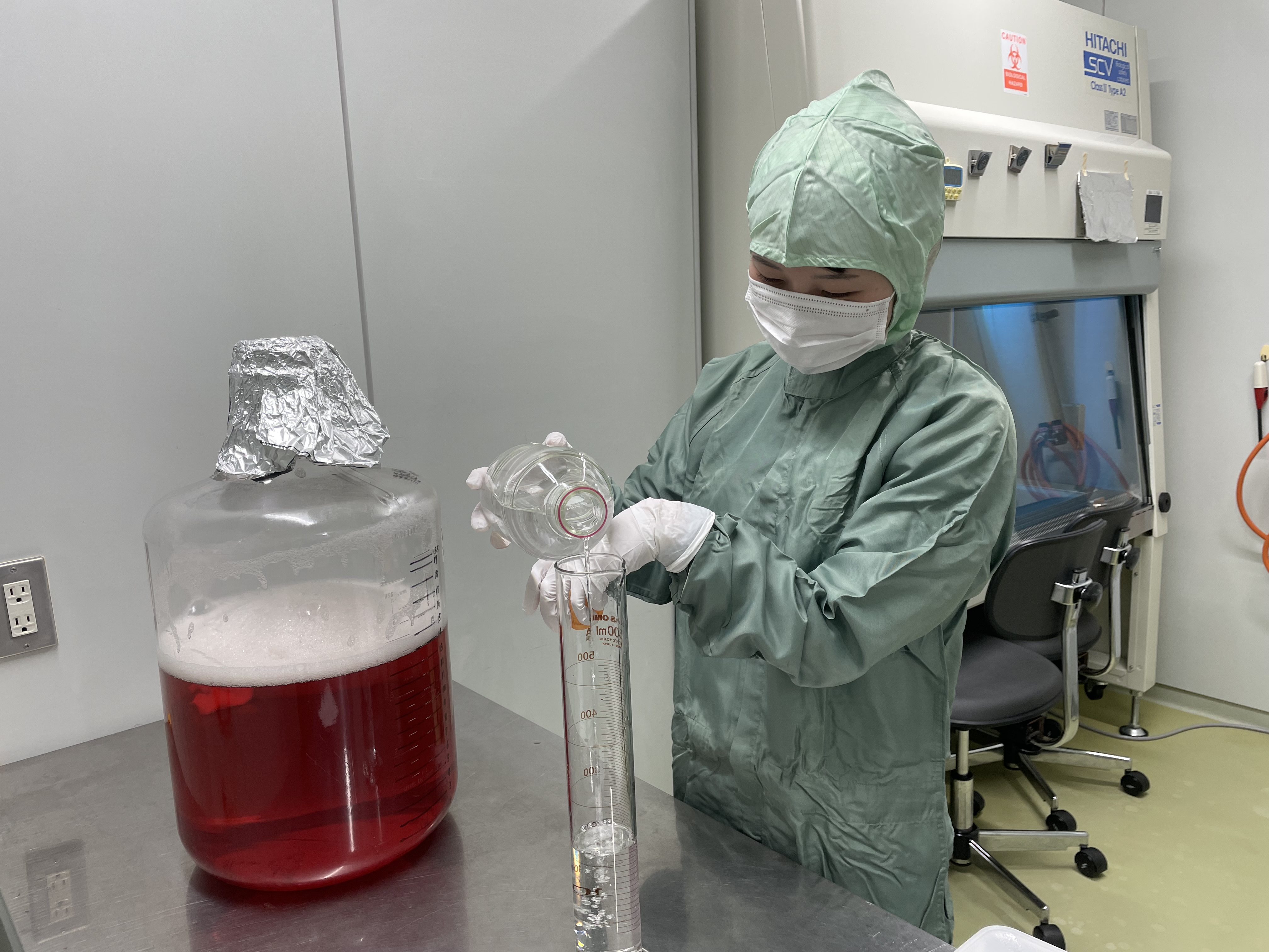 私が担当する生ワクチンは細胞を用いるため、細胞の増殖具合を観察します。